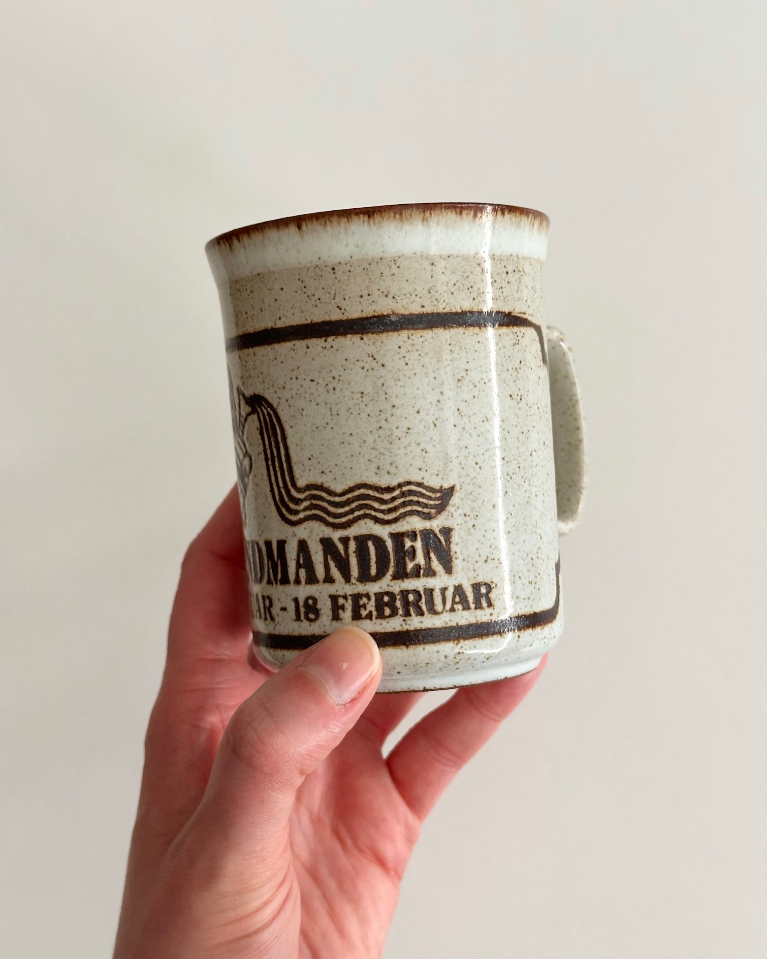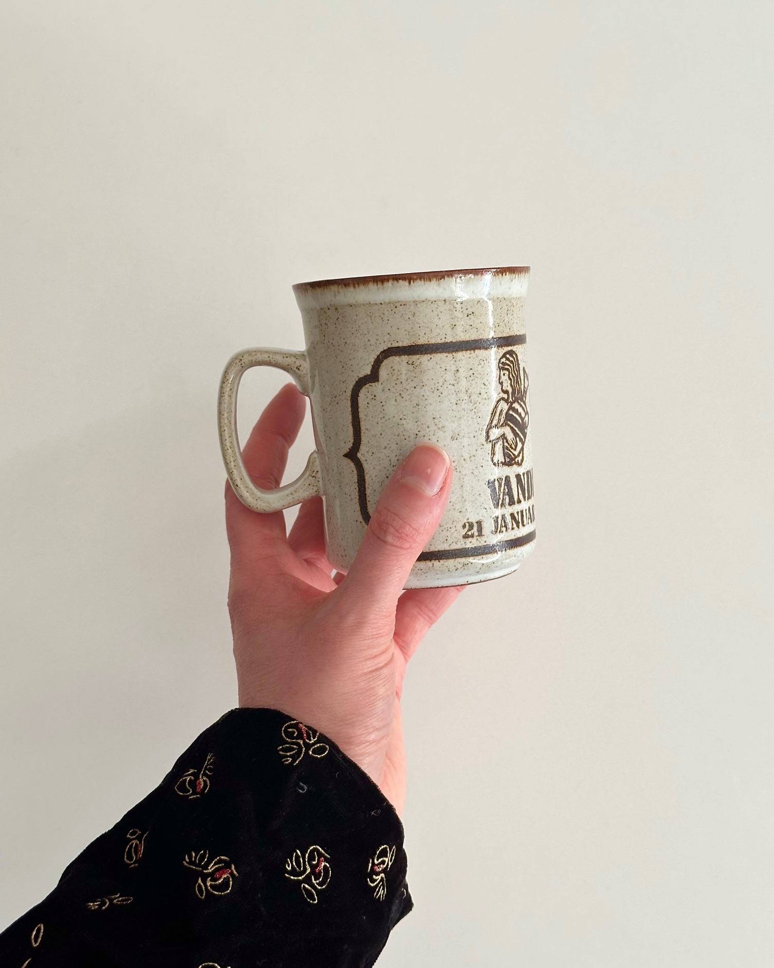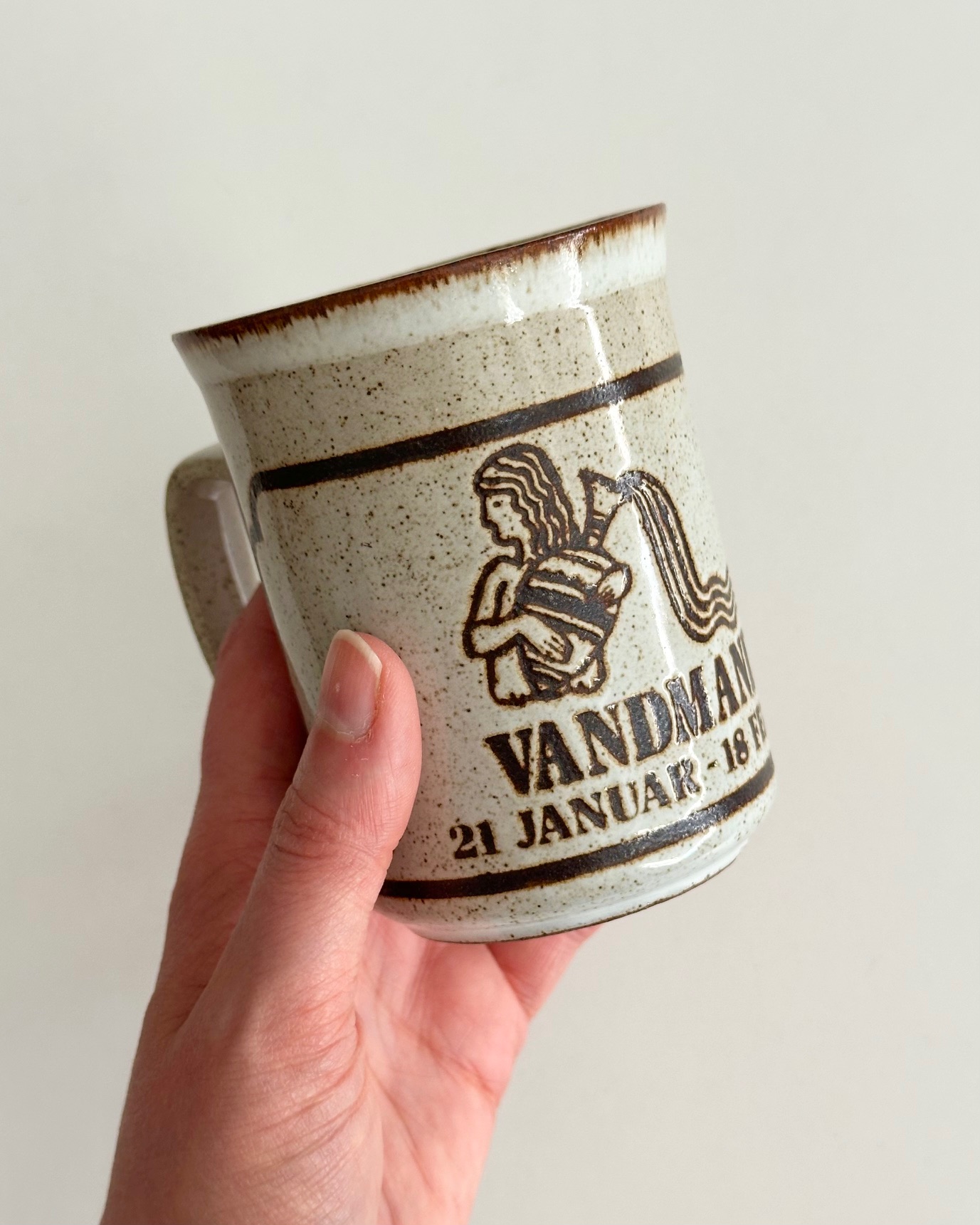 Mug from Duncan Ceramics, Scotland, for the Danish market. The print is Aquarius/Vandmanden (21. januar til 18. februar)