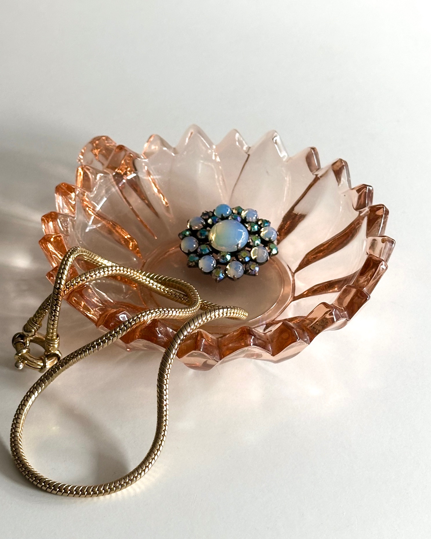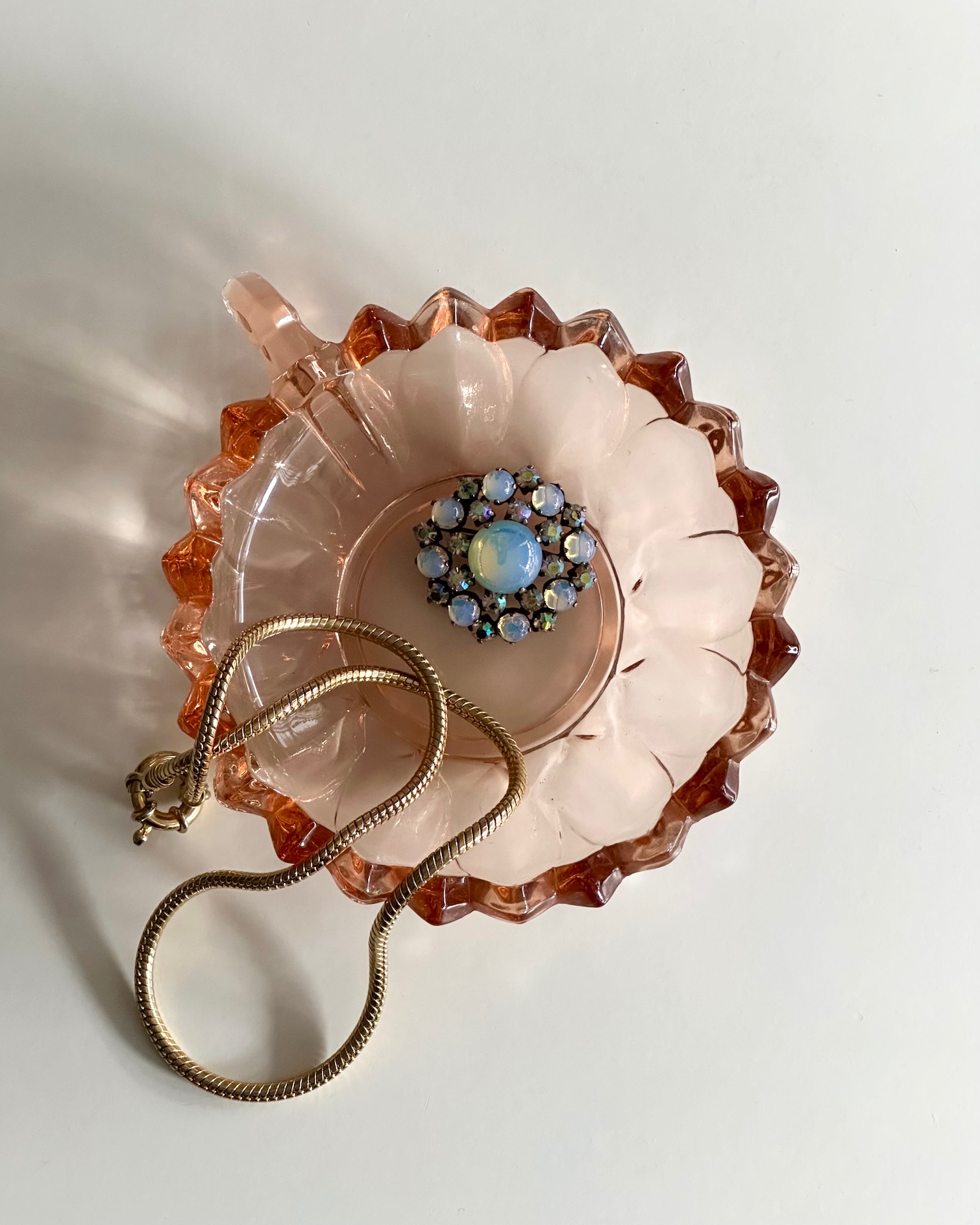 Mini glass dish, rosy