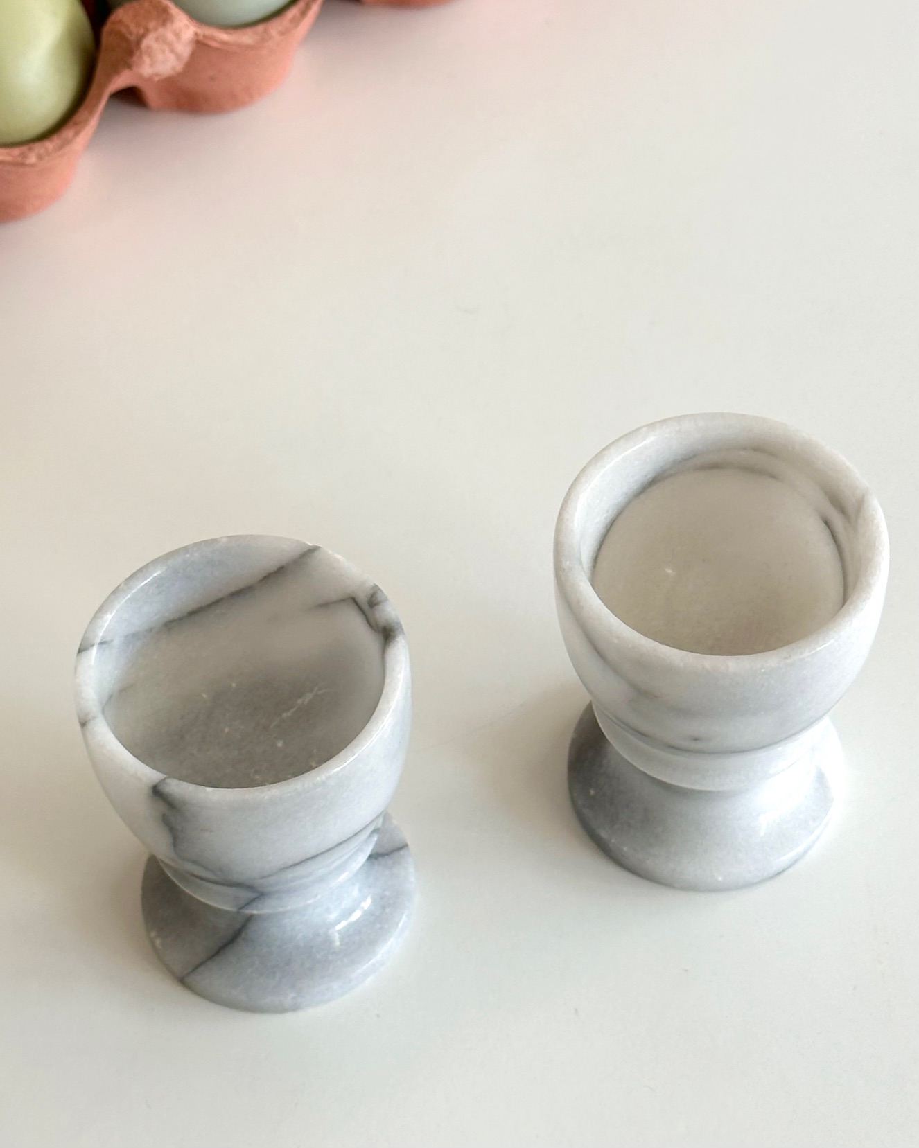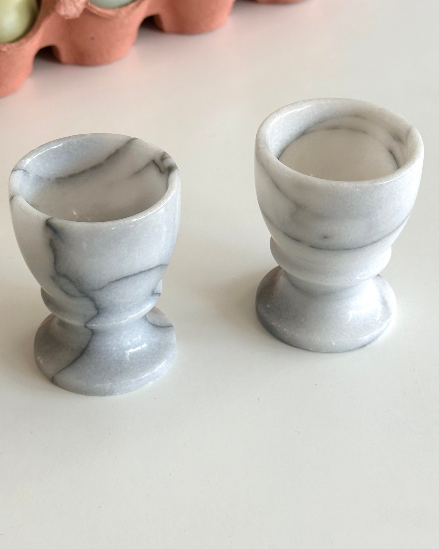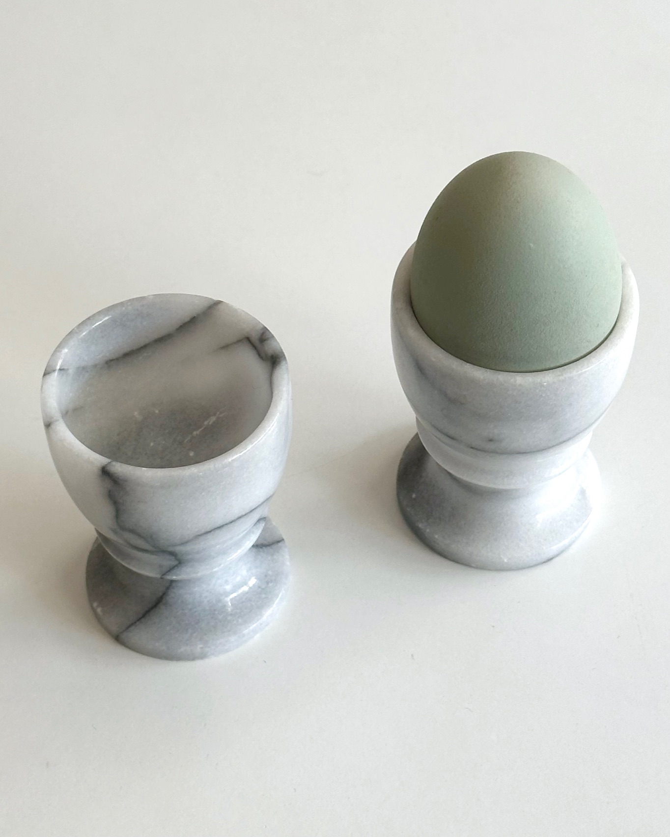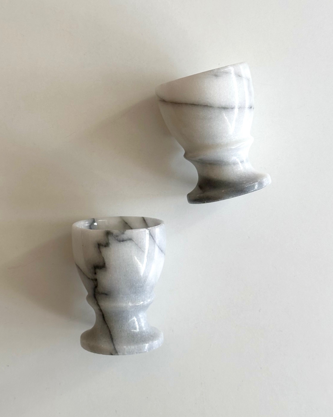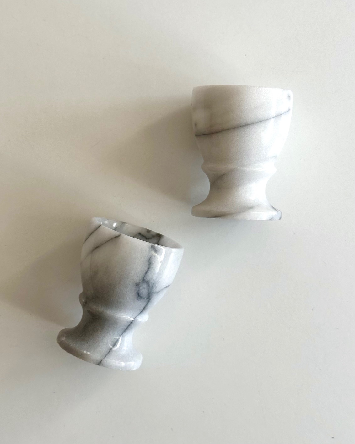 Marble egg cups on foot, set of 2