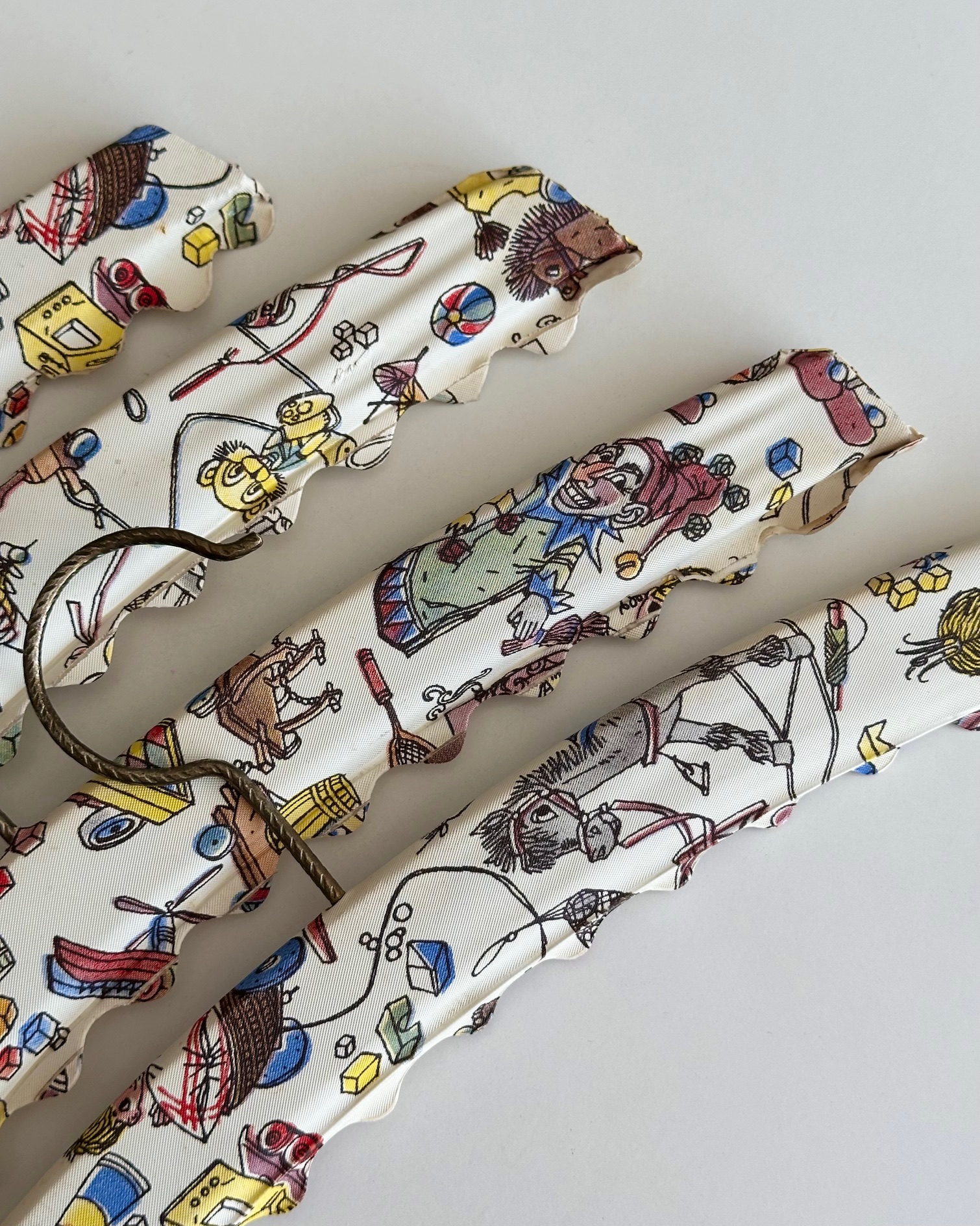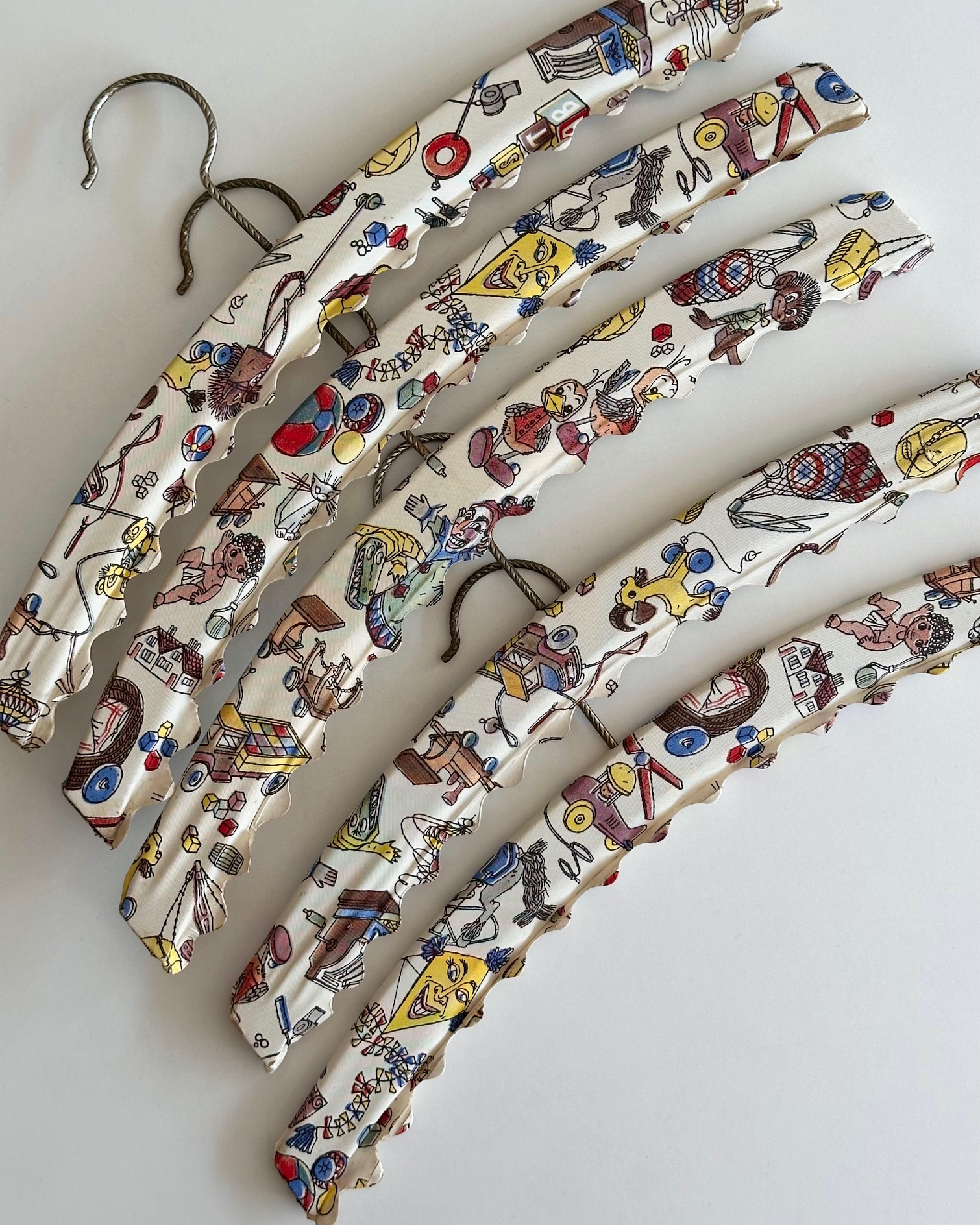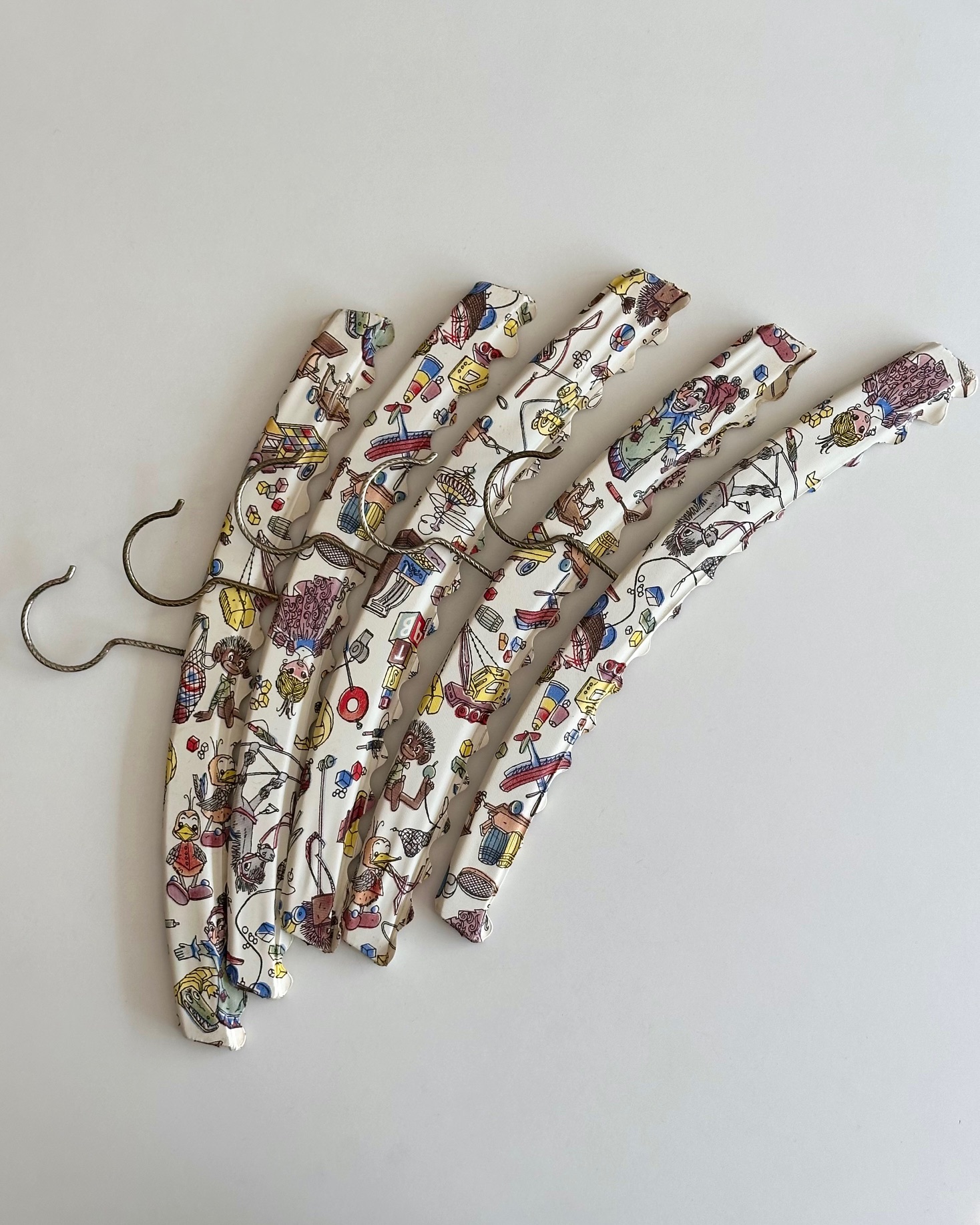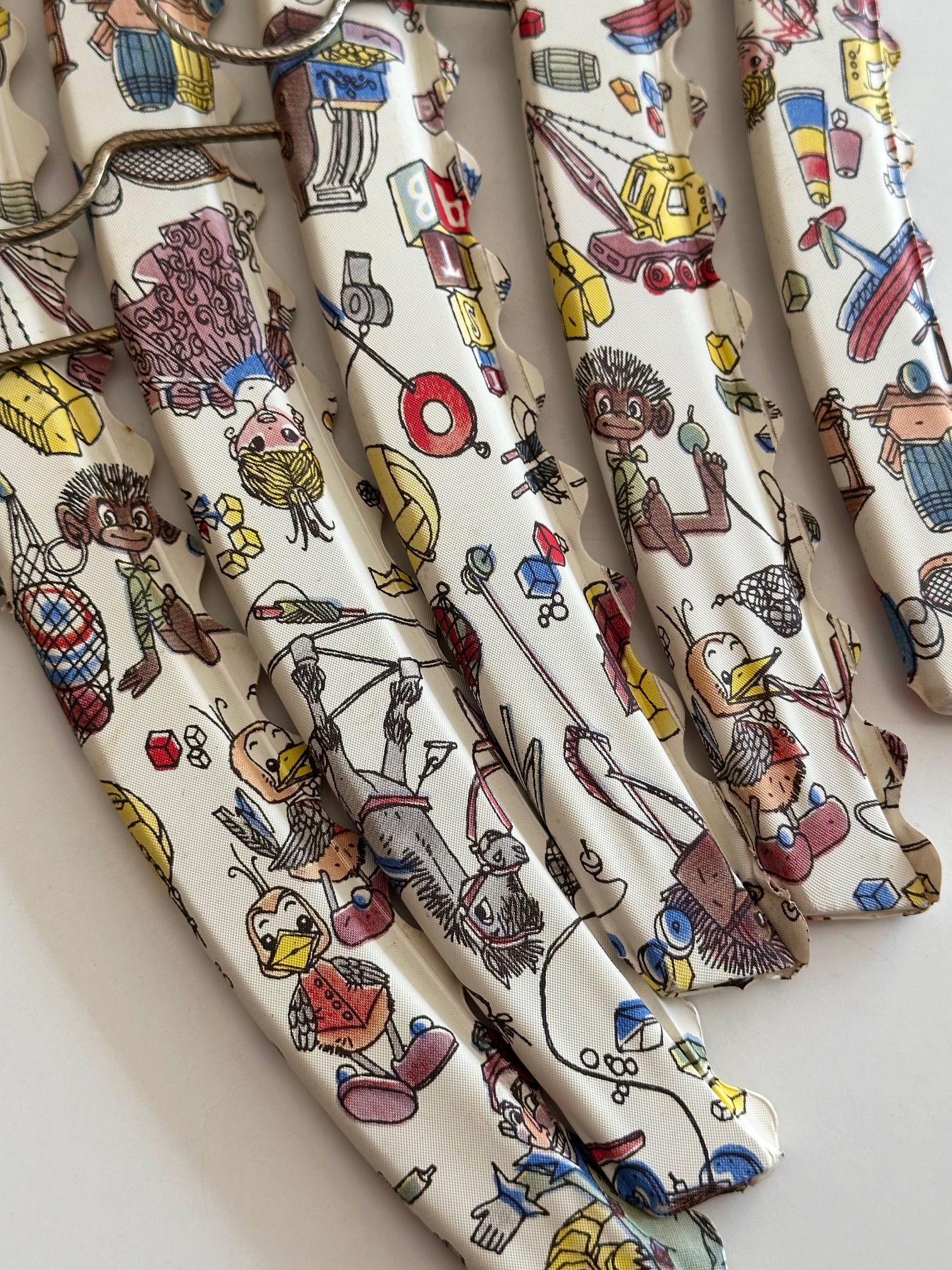 5 vinyl kids hangers from the 1950ies, with cute motifs